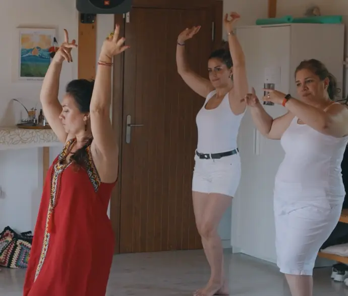 Descalz@, sin zapatos No traigas zapatos de flamenco, no hace falta; trabajaremos descalzos para una conexión más directa y respetuosa con el espacio.